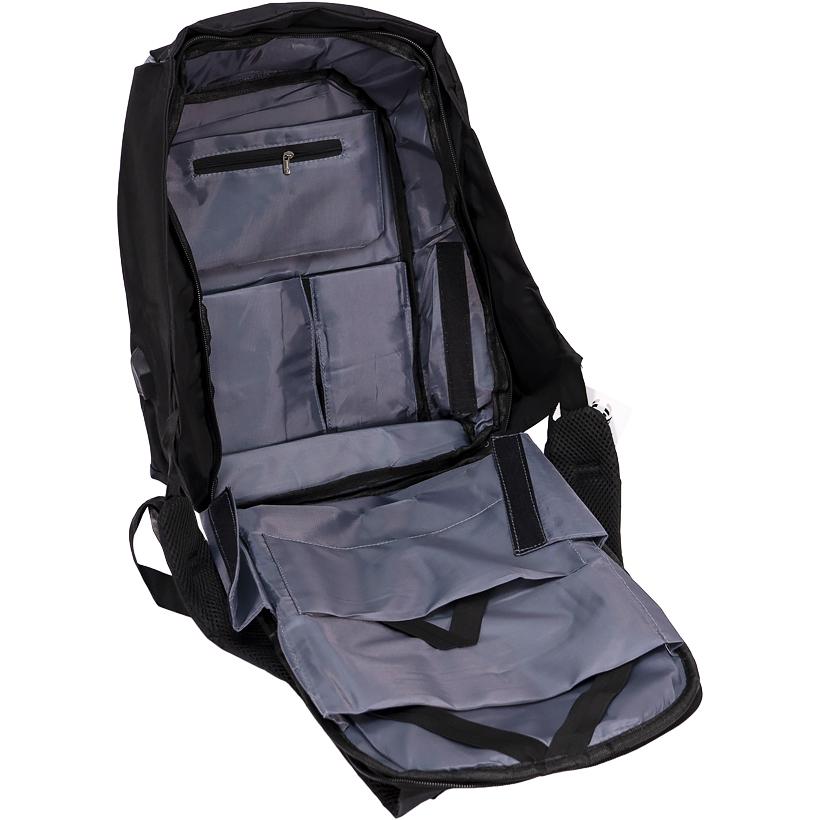 Рюкзак с антикражной системой: молния отделения скрыта на стороне, прилегающей к спине, что делает его открытие невозможным, пока рюкзак находится на спине. Включает защищенный отсек для ноутбука, два объединенных кармана, два отделения в нижней части и центральное отделение. Оснащен USB-выходом для зарядки и удобной лямкой. Может открываться под разными углами. Размеры рюкзака: 45 х 30 х 16 см, объем: 18 л, вес: 550 г. Цвет: черный.