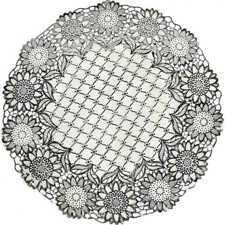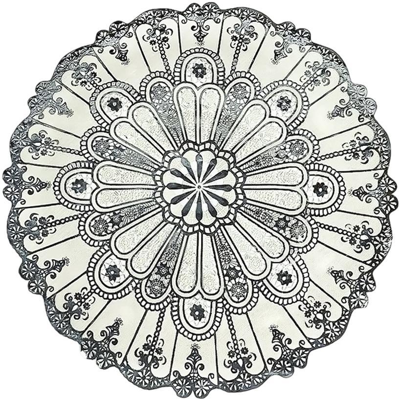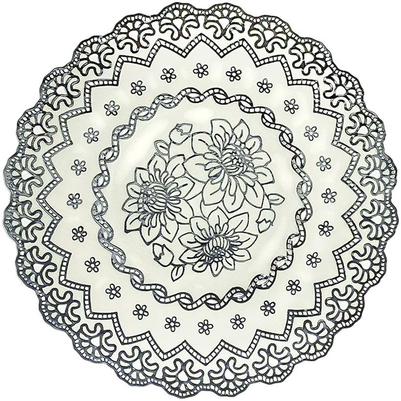 Круглая сервировочная салфетка для стола RH-02 диаметром 38 см — стильный декоративный элемент для оформления обеденной зоны. Салфетка выполнена в серебристом цвете с изысканным ажурным узором, который придаёт сервировке элегантность и аккуратный завершённый вид. Идеально подходит для размещения под тарелки, блюда, вазы, сервировочные подносы или декоративные композиции. Защищает поверхность стола и скатерть от царапин, загрязнений и следов от посуды. Круглая форма и универсальный дизайн гармонично вписываются в классический и современный интерьер, подходят для ежедневного использования и праздничной сервировки. Салфетка станет удачным выбором для дома, кафе, ресторанов, банкетов и торжественных мероприятий, а также подчеркнёт стиль стола во время праздников и приёма гостей.