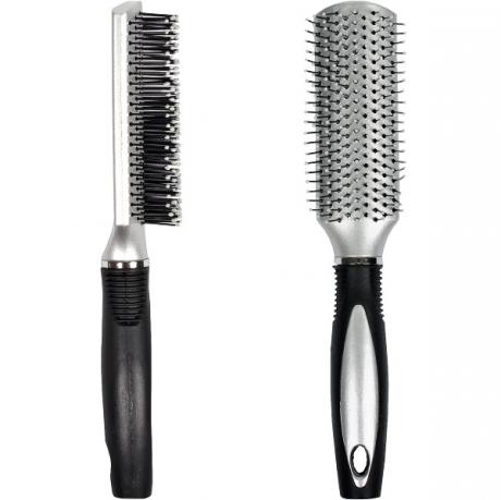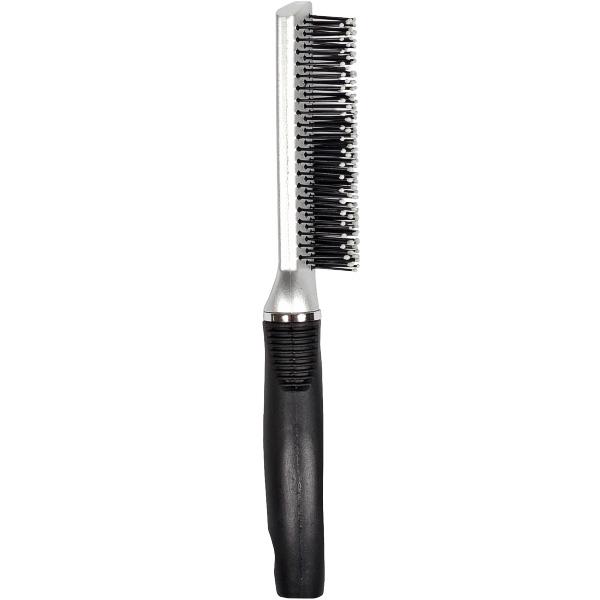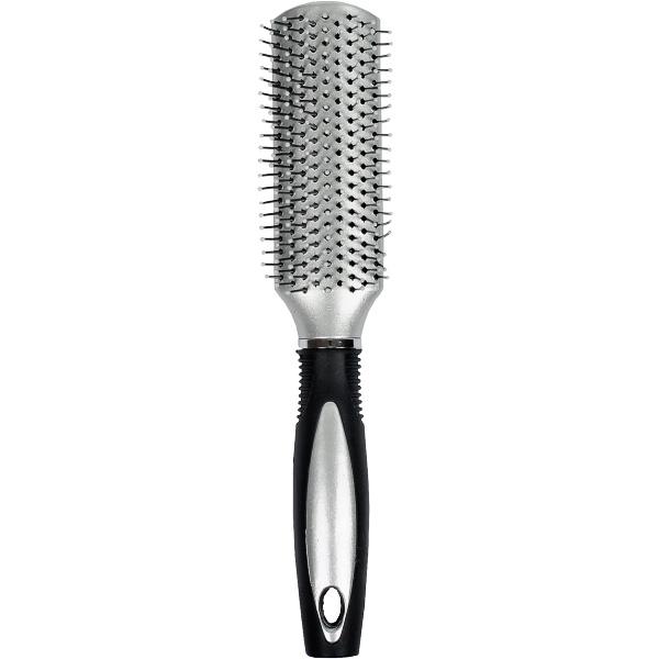 Универсальная массажная щетка с пластиковыми зубчиками, утолщенными на концах. Такая щетка бережно расчесывает любые волосы и не повреждает кожу головы. Размер: 23х4х3 см