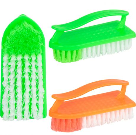 Щётка-утюжок 0016 — универсальная хозяйственная щётка для повседневной уборки. Компактный размер 13×6×6 см обеспечивает удобство использования и точный контроль при чистке. Эргономичная изогнутая ручка комфортно лежит в руке и снижает нагрузку во время работы. Щетинки высотой 2 см эффективно удаляют загрязнения с различных поверхностей, не повреждая их. Подходит для уборки кухни, ванной комнаты, сантехники, плитки, обуви и других хозяйственных задач. Практичный вариант для дома и оптовых закупок.