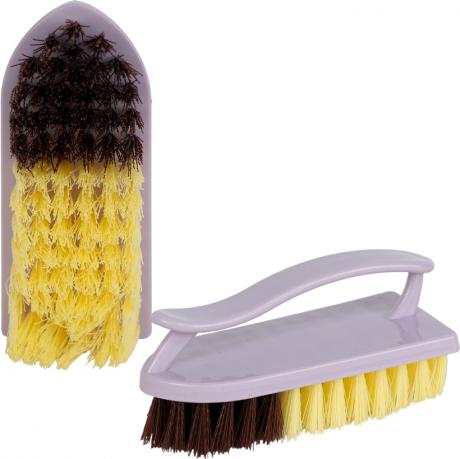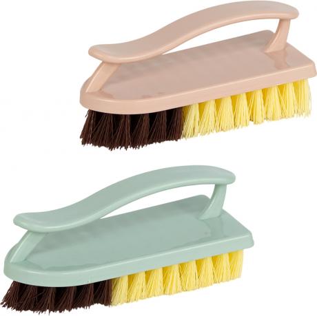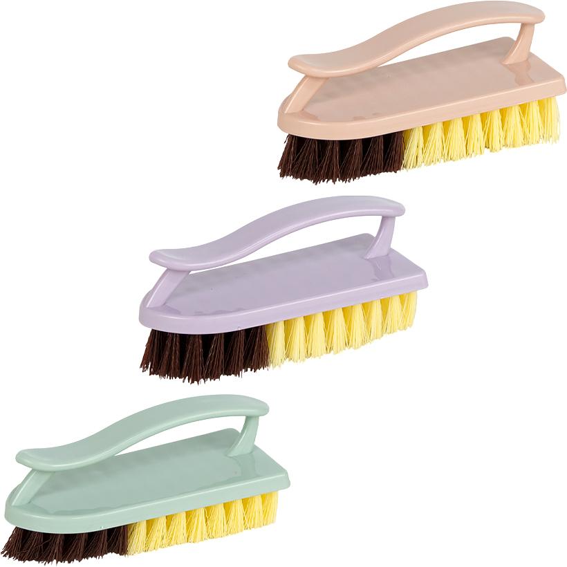 Щётка-утюжок 1689 — универсальная хозяйственная щётка для эффективной повседневной уборки. Размер 14×5,5×6,5 см обеспечивает удобный захват и комфортную работу. Прочный пластиковый корпус с эргономичной ручкой хорошо лежит в руке и позволяет прикладывать необходимое усилие при чистке. Щетинки высотой 2,5 см средней жёсткости эффективно удаляют загрязнения, не повреждая поверхность. Подходит для уборки кухни и ванной комнаты, мытья сантехники, плитки, полов, обуви и других хозяйственных задач. Практичный вариант для дома и оптовых закупок.