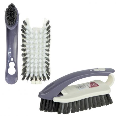 Щётка-утюжок 2 в 1 универсальная 2620 предназначена для удобной и эффективной очистки различных поверхностей в быту. Особенностью модели является съёмная дополнительная щётка, которая расширяет функциональность изделия и позволяет выполнять как основную, так и точечную уборку. Общая длина щётки — 15 см, ширина — 5,5 см, высота — 7 см. Основная рабочая зона имеет размер 14×5,5 см и оснащена щетинками высотой 2,5 см, эффективно удаляющими загрязнения без повреждения поверхности. Съёмная щётка длиной 16 см и шириной 2,5 см оснащена рабочей поверхностью 5×3 см, удобной для очистки труднодоступных мест. Эргономичная пластиковая ручка обеспечивает комфортный и надёжный хват. Практичный товар для дома, клининга и оптовых интернет-магазинов.