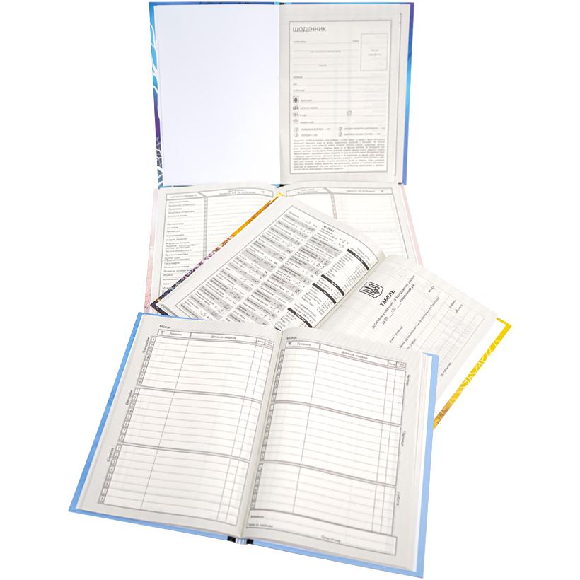 Щоденник формата 143х200 мм содержит 40 листов плотностью 55 г/м². Обложка выполнена в полноцветном дизайне с матовой ламинацией. Блок напечатан в одну краску на украинском языке. Форзац белый, корешок округлённый.
