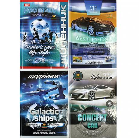 Микс 4 картинки! Дневник В5 на скобе, обложка мягкая, защитный лак. Блок 1+1. Украинский язык. В ящике 40шт. Размер: 20,5х16,5 см