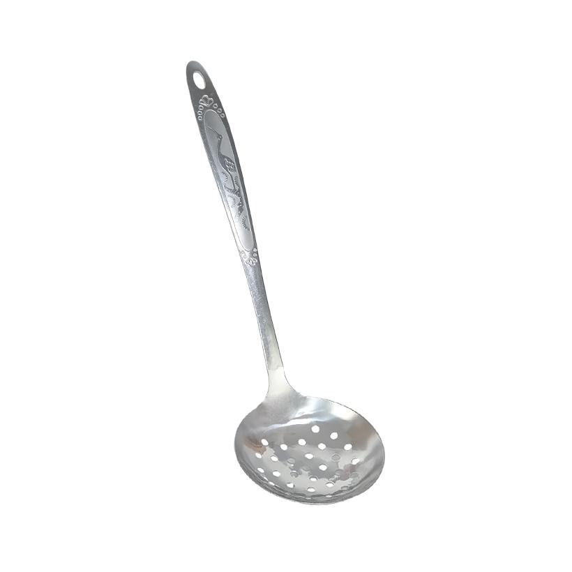Металлическая шумовка длиной 33 см предназначена для удобного извлечения и процеживания продуктов в процессе приготовления пищи. Изделие выполнено из прочного металла, устойчивого к высоким температурам, влаге и механическим нагрузкам, что обеспечивает надёжность и длительный срок службы при ежедневном использовании. Перфорированная рабочая часть эффективно удаляет лишнюю жидкость, масло или пену, сохраняя форму и структуру продуктов. Удлинённая ручка позволяет безопасно работать с горячими кастрюлями, сковородами, фритюрницами и мармитами, снижая риск ожогов. Классический дизайн «Серебряная птица» делает шумовку универсальной для профессиональных кухонь и домашнего применения. Изделие широко используется в кафе, ресторанах, столовых и сфере HoReCa. Поставляется в индивидуальной упаковке — пакет, что удобно для хранения, транспортировки и оптовой реализации. Практичное решение для комплектации кухонного инвентаря.