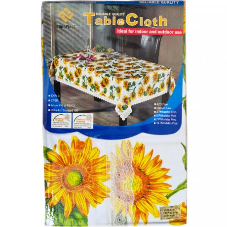Скатерть водоотталкивающая с блеском. Материал верха: ПВХ. Материал основы: нетканая основа (фланель). Обработка края: кайма с тисненым узором. Размер: 120х152 см