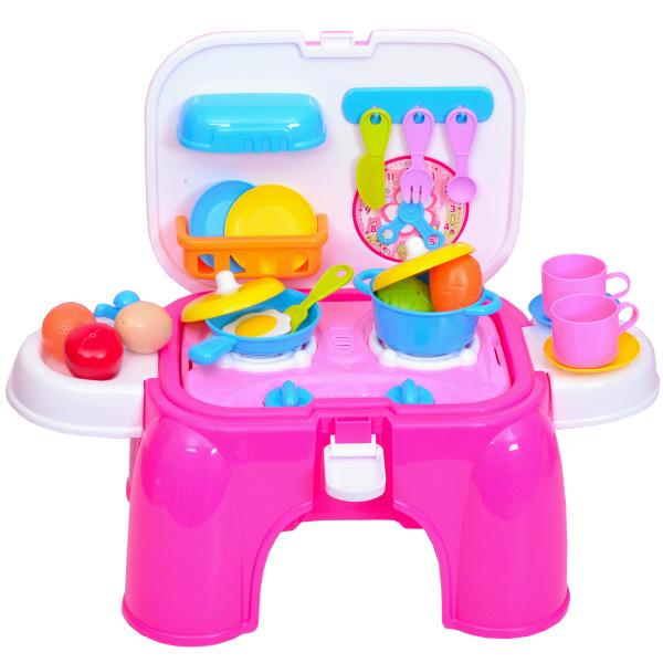 Кухонный набор легко собирается в маленький стульчик, на котором сможет сидеть малыш, а еще его можно носить с собой держа за удобную ручку. Набор изготовлен из качественных и безопасных материалов, упаковка яркая и информативная. Конфорки светятся и издают звук приготовления пищи. Продукты, посуда и весёлые наклейки входят в комплект. Яркий набор будет развивать фантазию вашего ребёнка и положительно влиять на его воображение. К тому же вы сможете научить ребёнка, как правильно пользоваться с той или иной бытовой техникой на примере набора. Игрушка работает от 2 батареек типа "АА" (в комплект не входят). Размер: 32х25х40 см. Высота стульчика в сложенном виде: 18 см. Возраст: 3 +