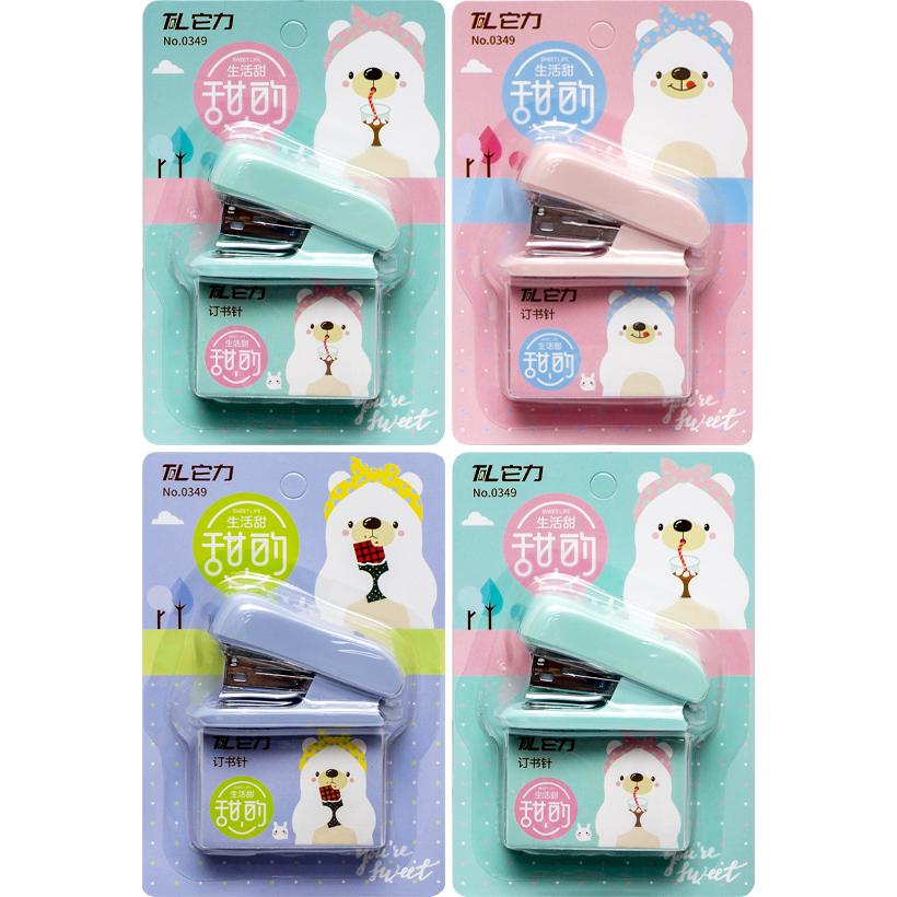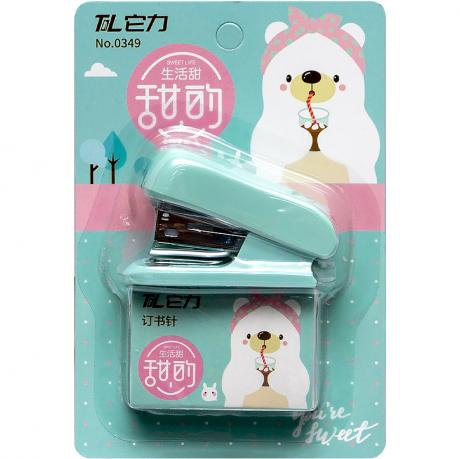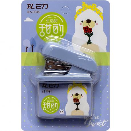 Степлер 0349 оснащен металлическим механизмом и пластиковой накладкой, предотвращающей скольжение руки. Использует скобы №24/6. Мощность пробивания составляет до 12 листов. В комплекте поставляются скобы. Размеры степлера: 60х40х30 мм.