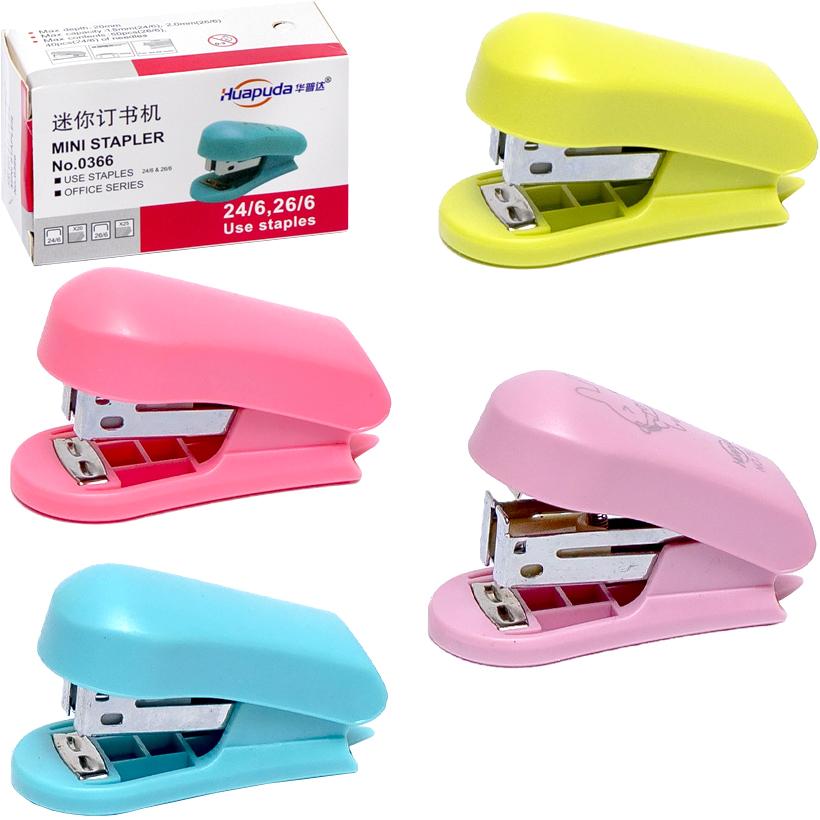 Этот степлер имеет размеры 70*40*30мм и предназначен для скоб размером 24/6 и 26/6 мм. Он обладает металлическим механизмом и пластиковым корпусом, выполненным в цветном исполнении. Степлер способен скреплять до 10 листов одновременно.
