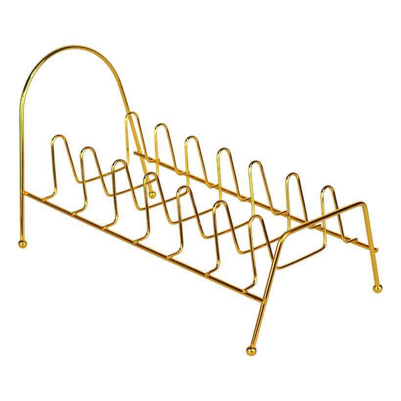 Настольная сушилка для посуды в золотом цвете — компактное и стильное решение для сушки тарелок, чашек и столовых принадлежностей. Металлическая конструкция устойчива к влаге и коррозии, легко очищается и гармонично смотрится на кухонной столешнице. Благодаря компактным размерам подходит для небольших кухонь и повседневного использования.