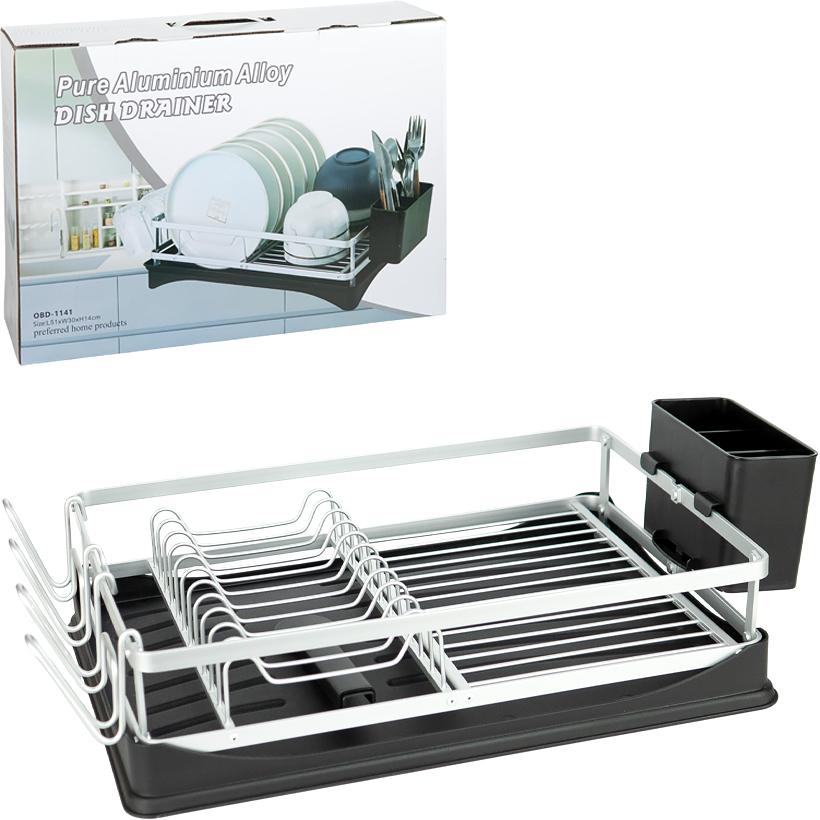 Настольная сушилка для посуды представляет собой практичное и удобное решение для кухни. Оснащена пластиковым поддоном со сливом внизу для отвода воды. Алюминиевый держатель предназначен для размещения посуды и 4 чашек. В комплект входит пластиковая подставка для ложек на 3 ячейки размером 15×10×7 см. Размер сушилки без держателей составляет 41×10×30 см. Упаковка — 43×30×12 см, коробка оснащена ручкой для удобной переноски. Подходит для ежедневного использования и экономии пространства на кухне.