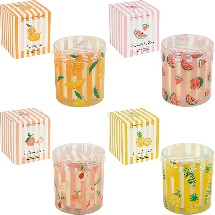 Аромасвеча восковая в стеклянном стакане с ярким принтом ягод и фруктов станет выразительным акцентом в интерьере. Вес со стаканом — 460 г, размер — 9×7,5 см, коробка — 9×8×8 см. Стакан дополнен пластиковой крышкой для сохранения насыщенности аромата и аккуратного хранения. Вся серия представлена сочными фруктово-ягодными композициями с лёгким сладковатым и свежим звучанием, создающими атмосферу уюта. Подходит для дома, салонов, фотозон и подарочных наборов. Товар выгодный для оптовых магазинов и подходит для розничной продажи.