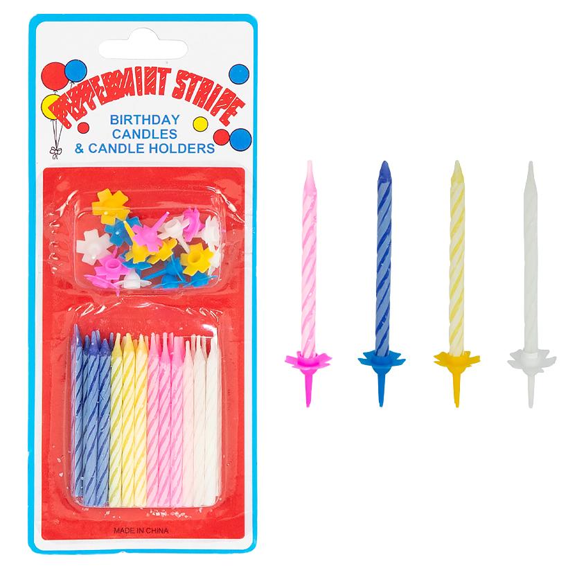 Набор mini свечей для торта состоит из 24 свечек и 12 подсвечников. Свечи могут использоваться для украшения тортов на любых праздниках. Длина каждой свечи составляет 5,5 см, диаметр - 4 мм. В наборе представлены свечи 4 различных цветов.