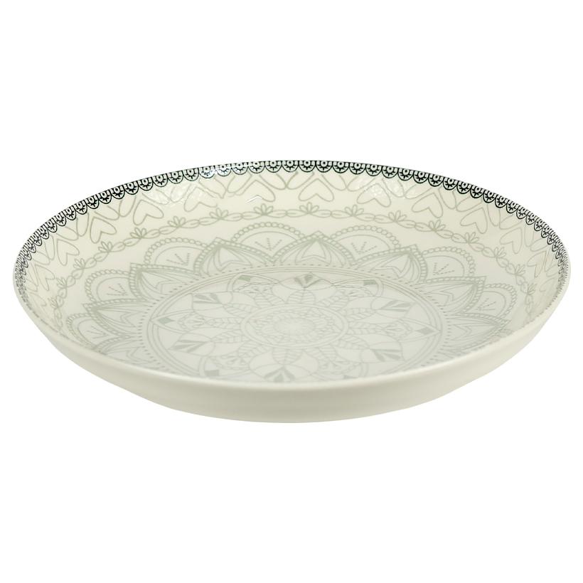 Керамическая тарелка универсального назначения диаметром 20,5 см и высотой 5,5 см, объём 500 мл. Выполнена из прочной керамики кремового оттенка и украшена изящным светло-серым орнаментом в виде мандалы, который смотрится мягко и элегантно. Лаконичный дизайн легко сочетается с любой сервировкой стола. Тарелка подходит для ежедневного использования и станет отличным выбором для подачи супов, салатов, пасты, каш и вторых блюд.