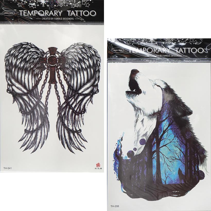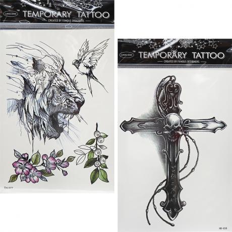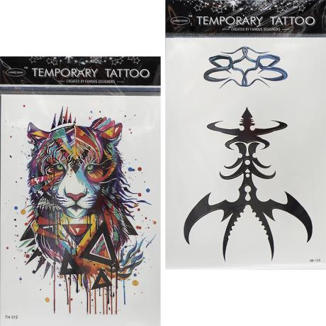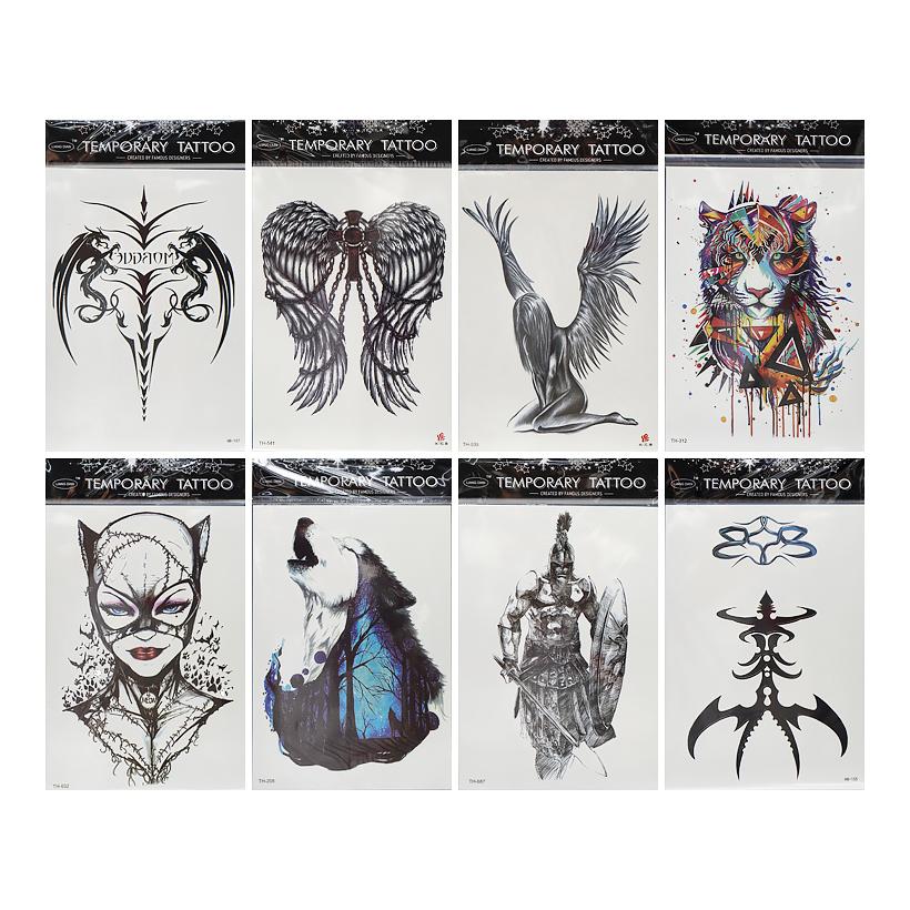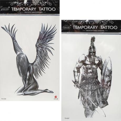 Переводные татуировки для тела. Размер блистера составляет 15 см на 21 см. Татуировки подходят для временного нанесения и безопасны для кожи.