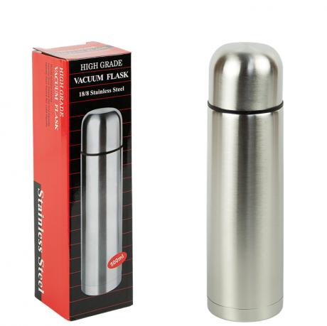 Термос 500 мл из нержавеющей стали 18/8 — практичное и надёжное решение для хранения горячих и холодных напитков в дороге, на работе и во время отдыха. Размер термоса 23×6,5 см, компактный формат подходит для сумки или рюкзака.