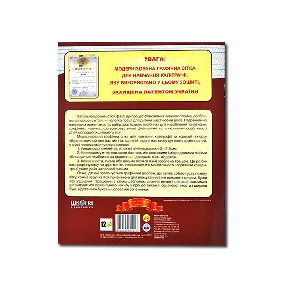 Каллиграфическая тетрадь - шаблон. Увеличенный размер графической сетки (бордо). Белизна 100%, плотность бумаги 65 г/м²², бумага офсетная, с красными полями, полноцветная обложка с импортными красителями плотностью 200 г/м²². Для обучения правильного письма. Стандартный размер графической сетки. Запатентованая методика обучения калиграфии и коррекции подчерка ребёнка. Сертификат ISO. Эти тетрадки-шаблоны рекомендованы для учеников первых четырех классов. Всем нам хорошо известно, что процесс овладения навыками письма — нелегкий труд для первоклассника. Мелкие мышцы кисти и пальцев в этом возрасте еще слабы и рука быстро устает. Кроме того, мышцам не хватает согласованности и скоординированности. Именно для того, чтобы предотвратить ситуацию, когда ваш ребенок не успевает "выписаться", создана эта тетрадь. Работая по данной тетради, ребенок сможет стандартизировать написание и соединение буквенных элементов, научится придерживаться одинакового наклона букв и расстояния между словами.