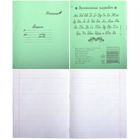 Белизна 98%, плотность бумаги 65г/м², бумага офсетная Котлас, с красными полями, обложка с импортными красителями плотностью 90г/м². Эти тетради используют для контрольных работ, срезов знаний и дополнительных занятий.