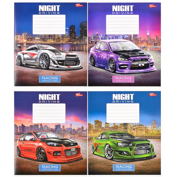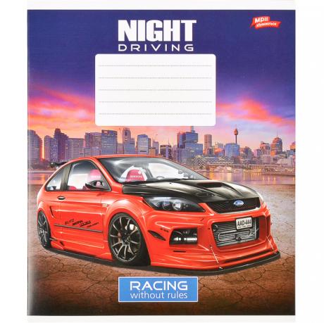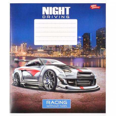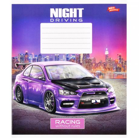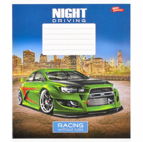 Тетрадь цветная 12 листов, клетка "Гонки в городе ночью"