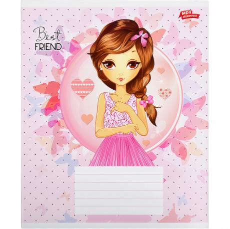 Тетрадь цветная 12 листов, клетка "Лучший друг"