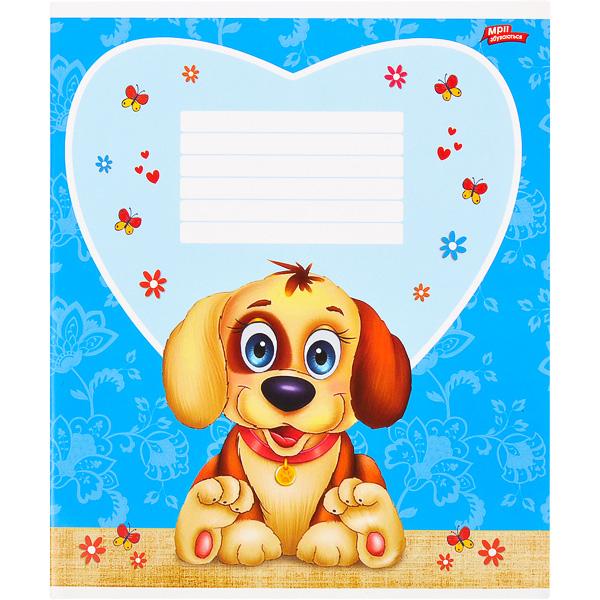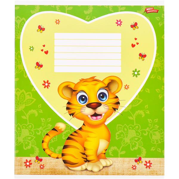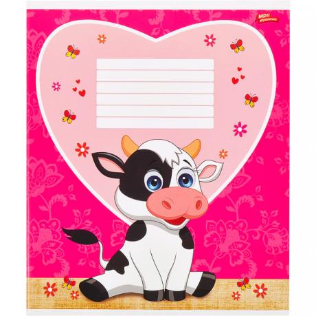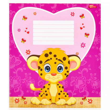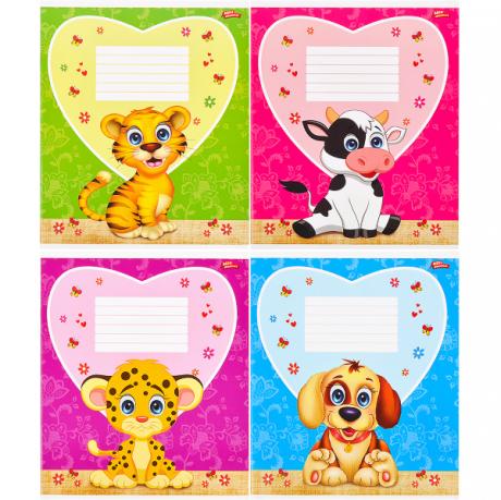 Тетрадь цветная 12 листов, косая с доп.линией "Мультяшные зверята"