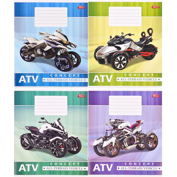 Тетрадь цветная 12 листов, косая с доп.линией "Вездеходы"