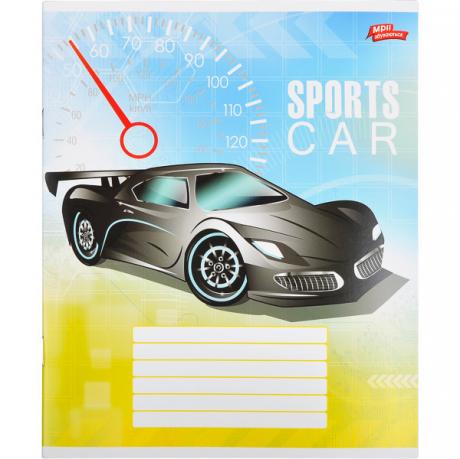 Тетрадь цветная 12 листов, косая с доп.линией "Спортивные машины"
