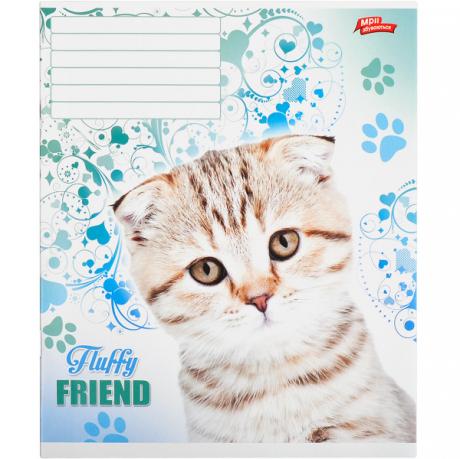 Тетрадь цветная 12 листов, косая с доп.линией "Котята и щенки"