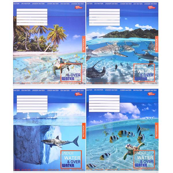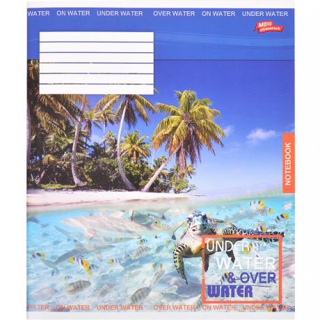 Тетрадь цветная 18 листов, линия "Под водой и над водой"
