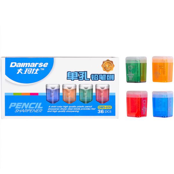Точилка с контейнером под 1 карандаш. Треугольная, прозрачная. Цвета в ассортименте. В упаковке 36 шт.