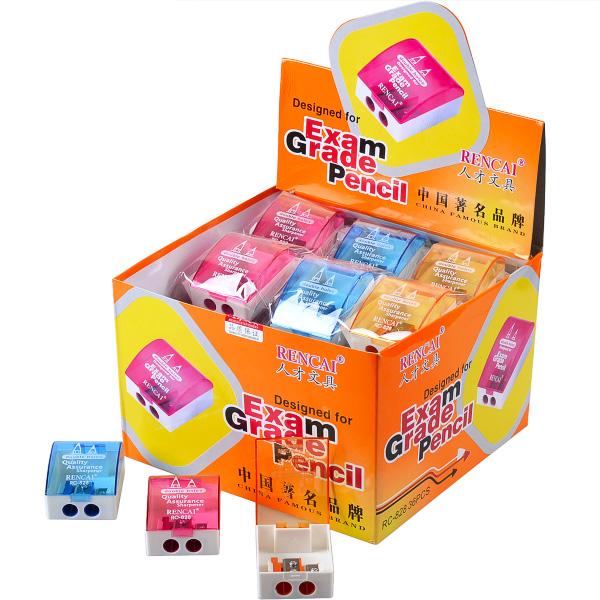 Точилка под 2 карандаша. Цвета в ассортименте. В упаковке 36 штук.