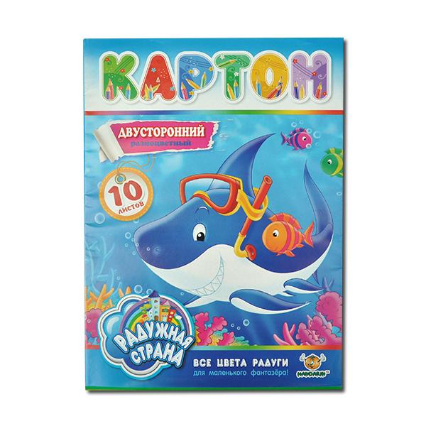 Набор цветного разноцветного картона в бумажном конверте, 10 листов, формат А4, плотность картона 230гр. Один лист - два цвета. Подходит для аппликаций, вырезаний, склеивания. Развивает мышление, моторику рук и фантазию. Цвета: зеленый/голубой (2 листа), желтый/красный (2 листа), малиновый/оранжевый (2 листа), бордовый/малиновый, бордовый/синий, черный/коричневый (2 листа).