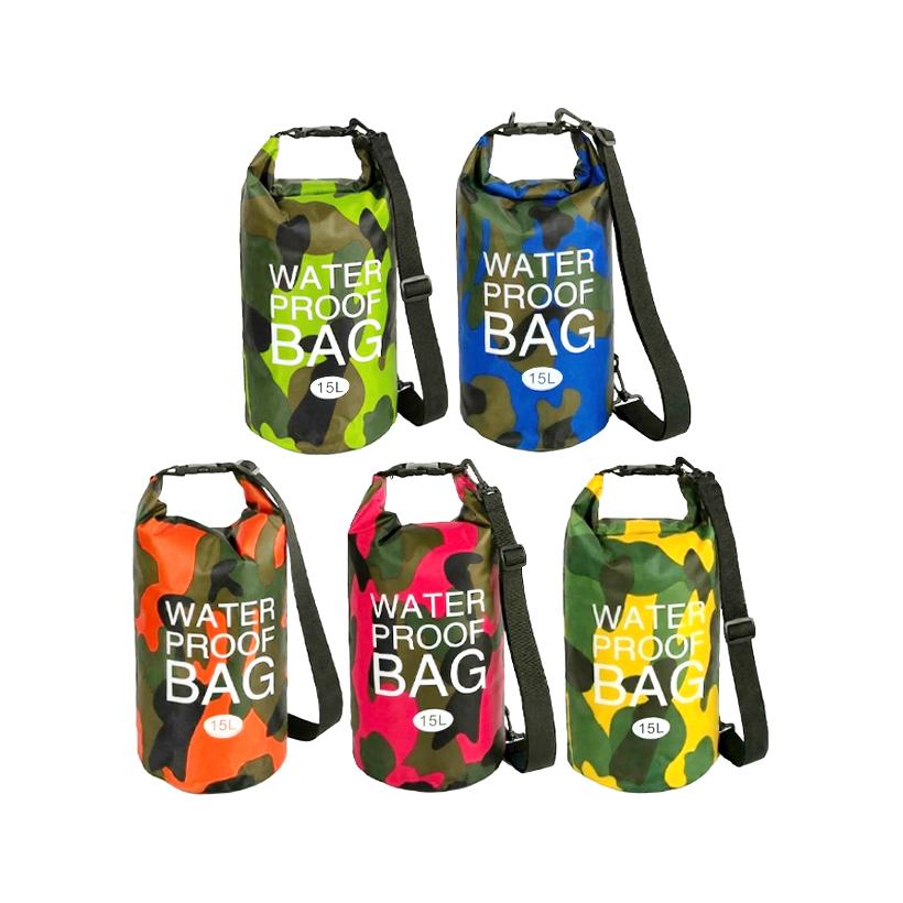 Гермомешок предназначен для защиты вещей от влаги во время активного отдыха, путешествий и повседневного использования. Размер — 54х36,5 см, объем — 15 л. Изготовлен из полиэстера, выполнен в камуфляжной расцветке. Конструкция предусматривает скрутку с фиксацией на фастексы, что обеспечивает герметичность и удобство эксплуатации. Дополнен ручкой и одинарным регулируемым плечевым ремнем для комфортной переноски. Подходит для хранения одежды, личных вещей, гаджетов и аксессуаров в условиях повышенной влажности. Цена указана за 1 единицу товара. Товар выгодный для оптовых магазинов и подходит для розничной продажи.
