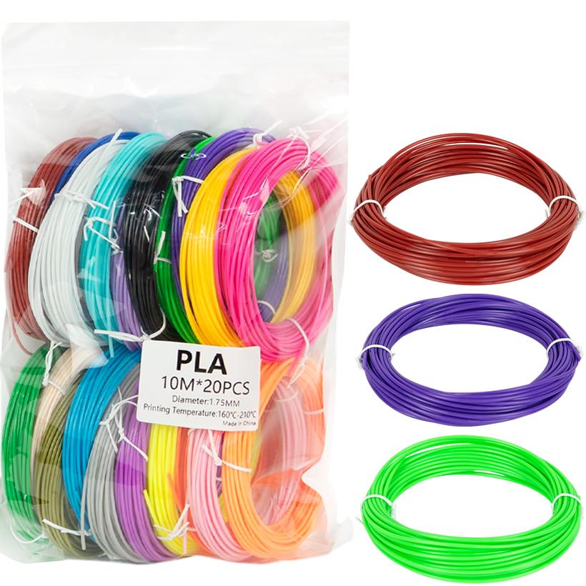 Набор пластика (филамента) для 3D-ручки предназначен для создания объемных моделей и рисунков. В комплекте 20 цветных нитей по 10 м каждая. Диаметр пластика 1,75 мм, рабочая температура плавления 160–210 °C. Подходит для большинства 3D-ручек и обеспечивает ровную подачу пластика при рисовании и моделировании. Используется для творчества и обучения. Нити свернуты в мотки и упакованы в зип-пакет размером 32×23 см. Цена указана за 1 набор. Товар выгодный для оптовых магазинов и подходит для розничной продажи.