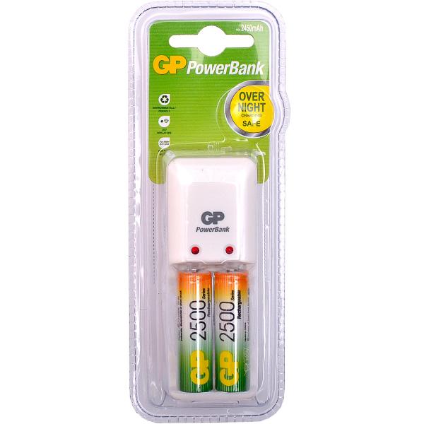 Экономия средств, безопасный заряд и удобство обращения. Серия STANDARD зарядных устройств GP PowerBank предлагает экономное решение для заряда аккумуляторов всех типоразмеров. Если вам нужно зарядить аккумуляторы типоразмеров ААА, АА, С, D или 9В, все зарядные устройства PowerBanks просты и удобны в использовании; просто поместите Ваши аккумуляторы в устройство и оставьте их заряжаться на всю ночь. Автоматический таймер гарантирует безопасный процесс заряда, после которого Вы можете вытащить заряженные аккумуляторы, когда они Вам понадобятся. Устройство, разработанное для того, чтобы оно всегда находилось в розетке - для мгновенной энергии. Компактное устройство. Два канала для заряда позволяют заряжать 1-2 никель-металлгидридных аккумулятора типоразмеров АА или ААА. В комплекте 2 аккумулятора 250 ААНС.