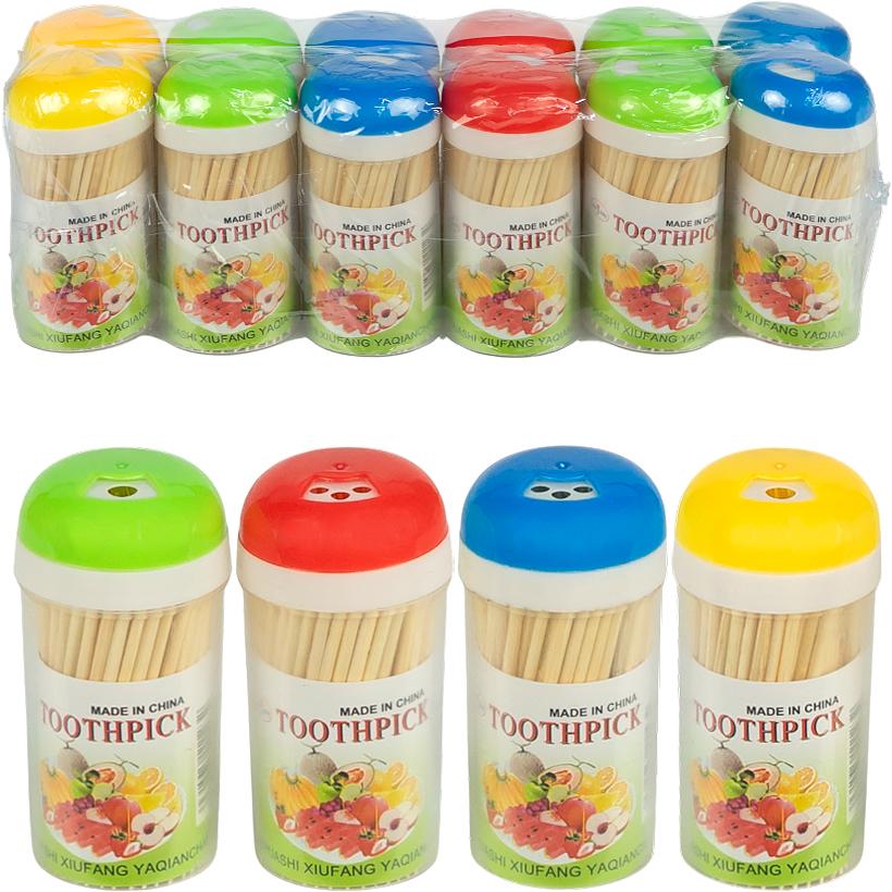Зубочистки размещены в круглом компактном боксе, который обеспечивает аккуратное хранение и удобство использования.